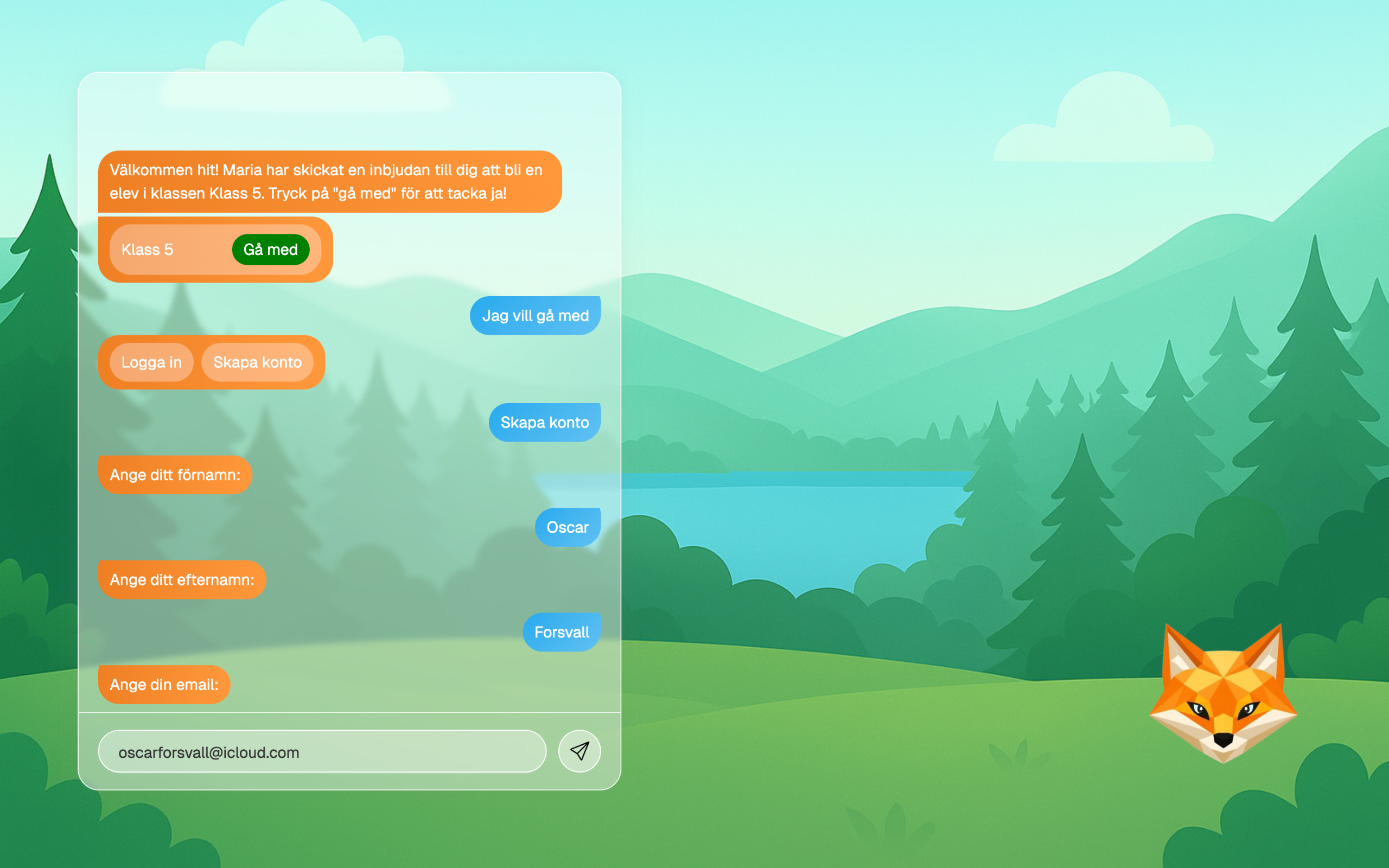 AI:n. I version 2 så ska räven även ha en kropp och kunna prata och visa känslor. Eleven ska både kunna skriva och prata med den. Det viktiga är att dess svar ser enkla ut, är lätta för eleven att förstå och att AI är lätt att använda, UX. Framöver kommer det nog bli kortare svar, fler bilder, kanske videor och att AI svarar i 3 nivåer. Först lite hjälp, sen mer och sist väldigt mycket.